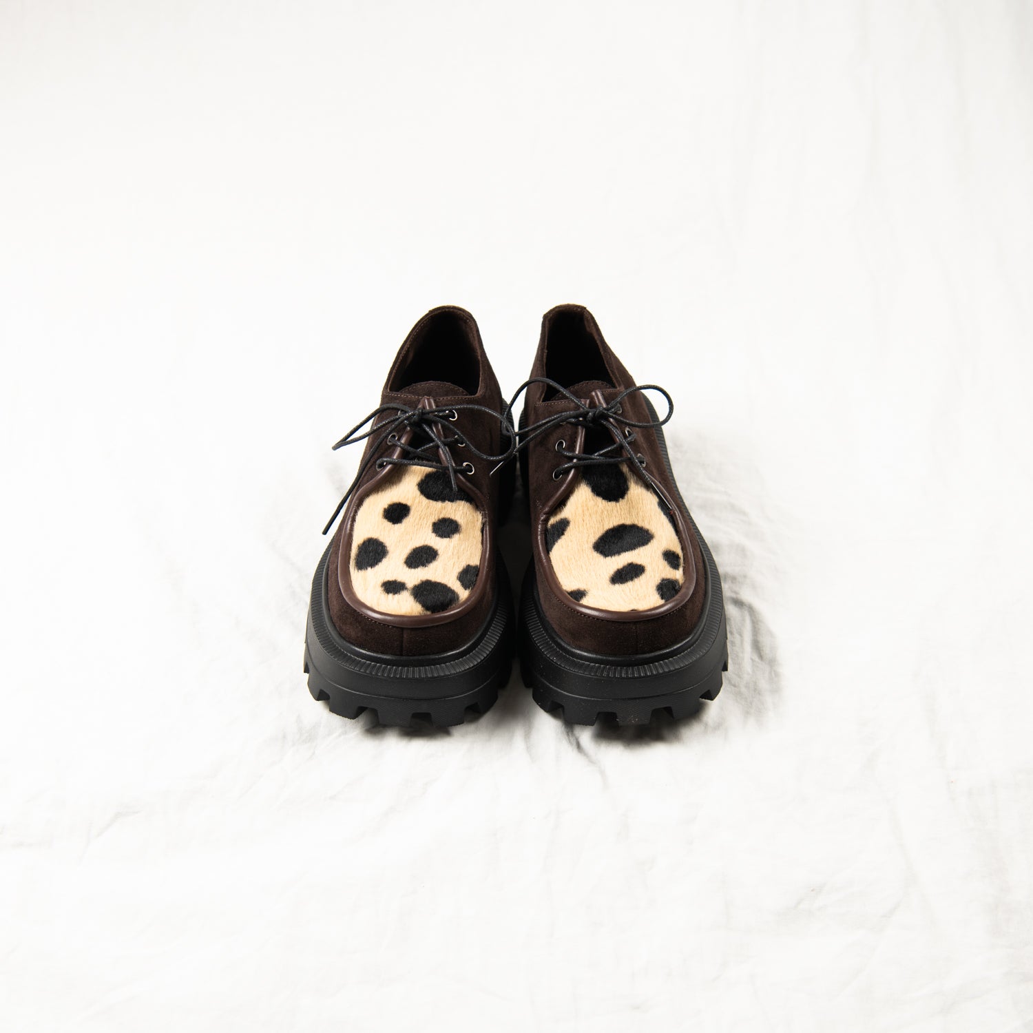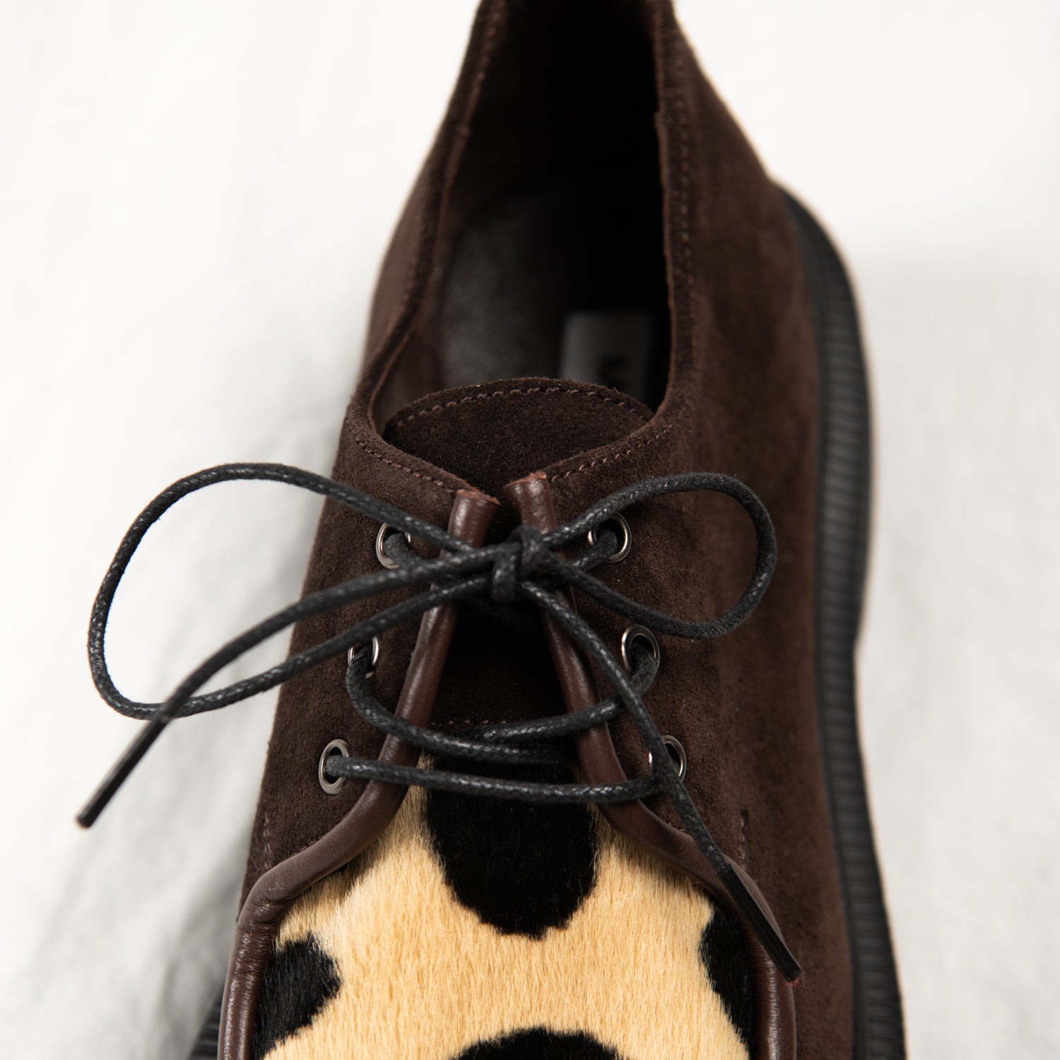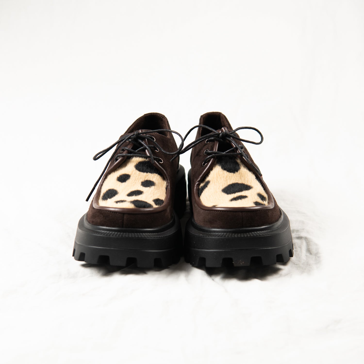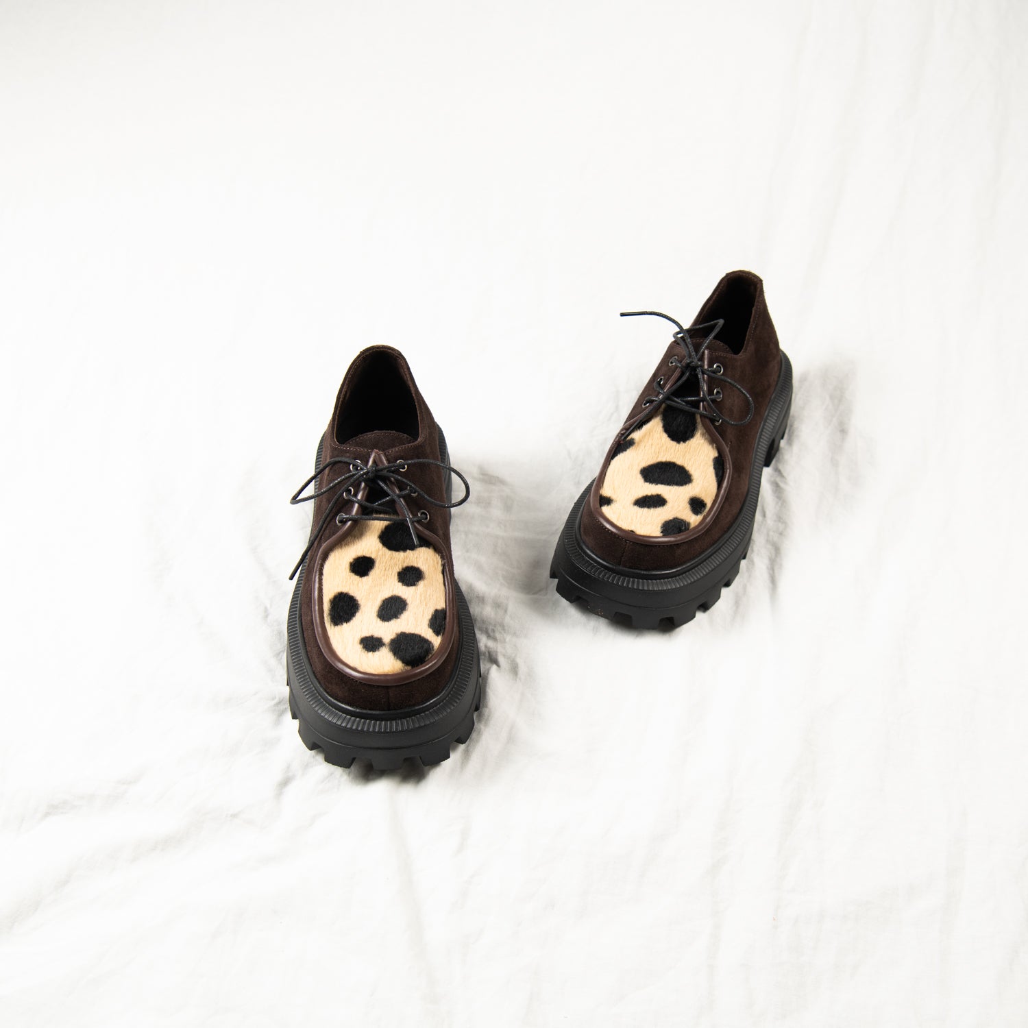 Cocoa Clash – Brown Suede & Spotted Pony Hair