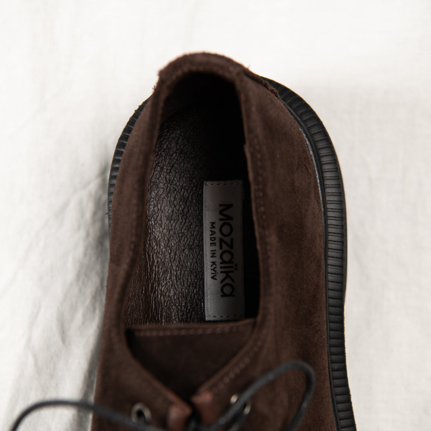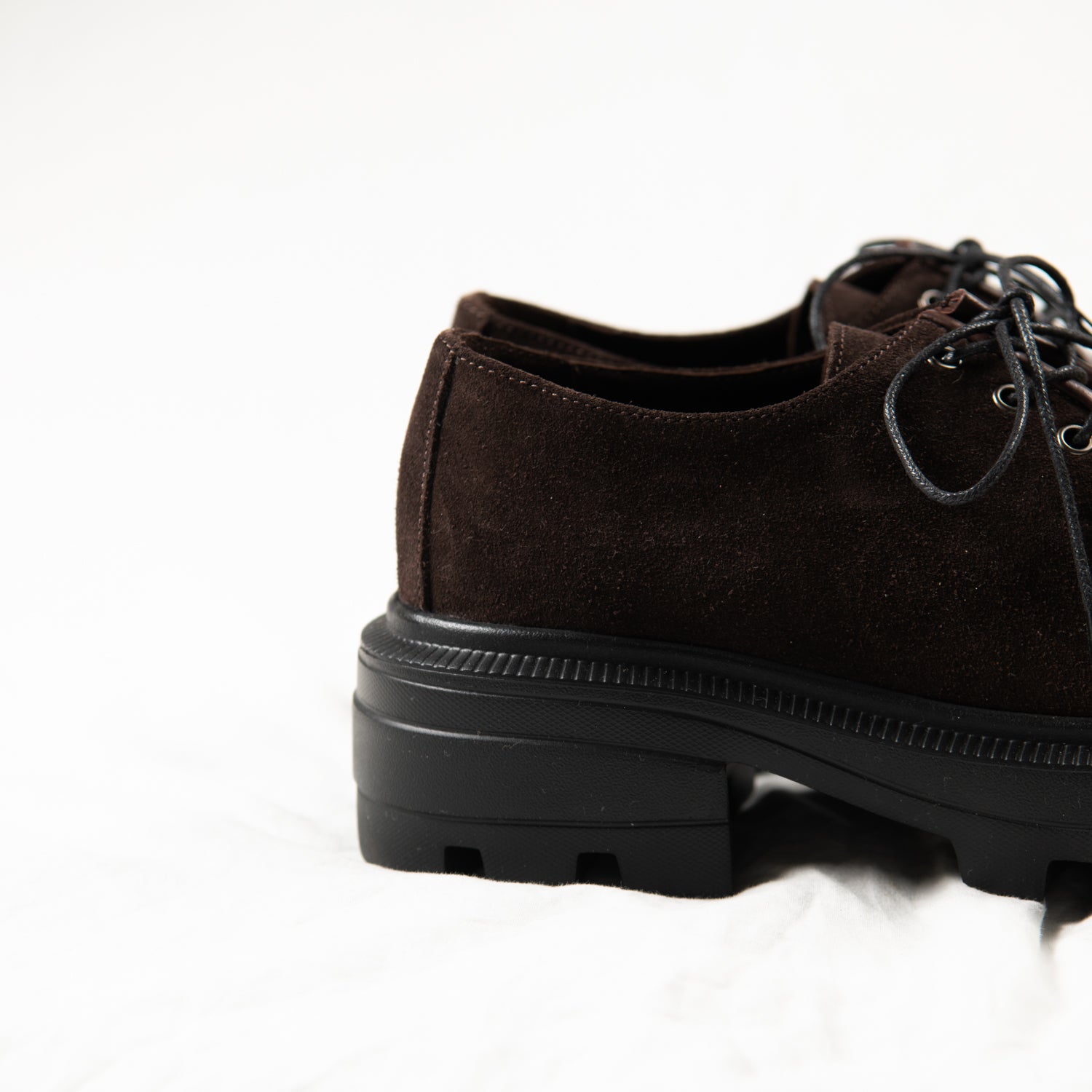 Deep brown suede upper — soft and rich
