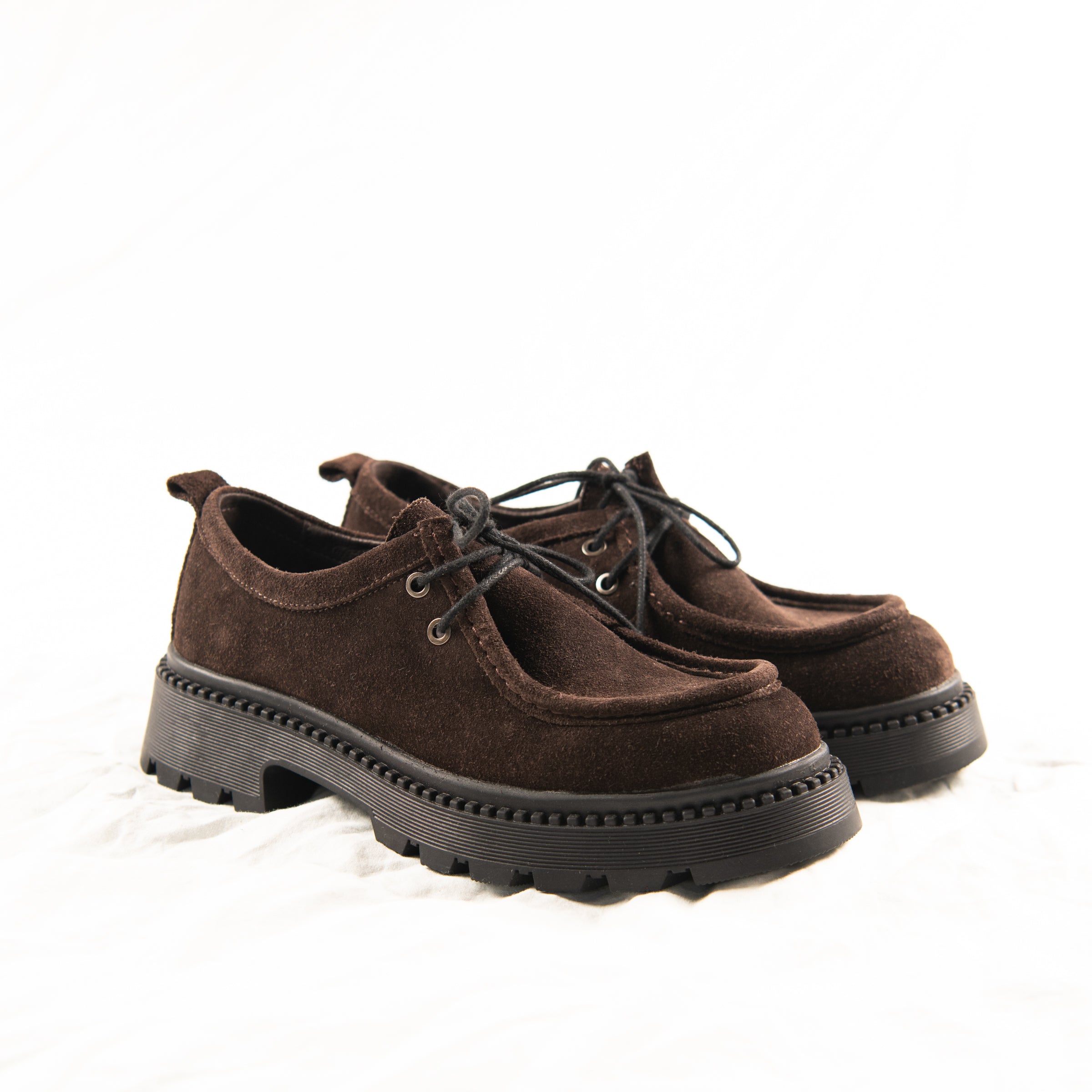Meet your new go-to for comfort that doesn’t compromise on style. Crafted from buttery-soft chocolate suede, these loafers feature a statement platform sole with extra grip and weight — designed for days when you want a little more edge. Classic, clean-lined, and made to last.